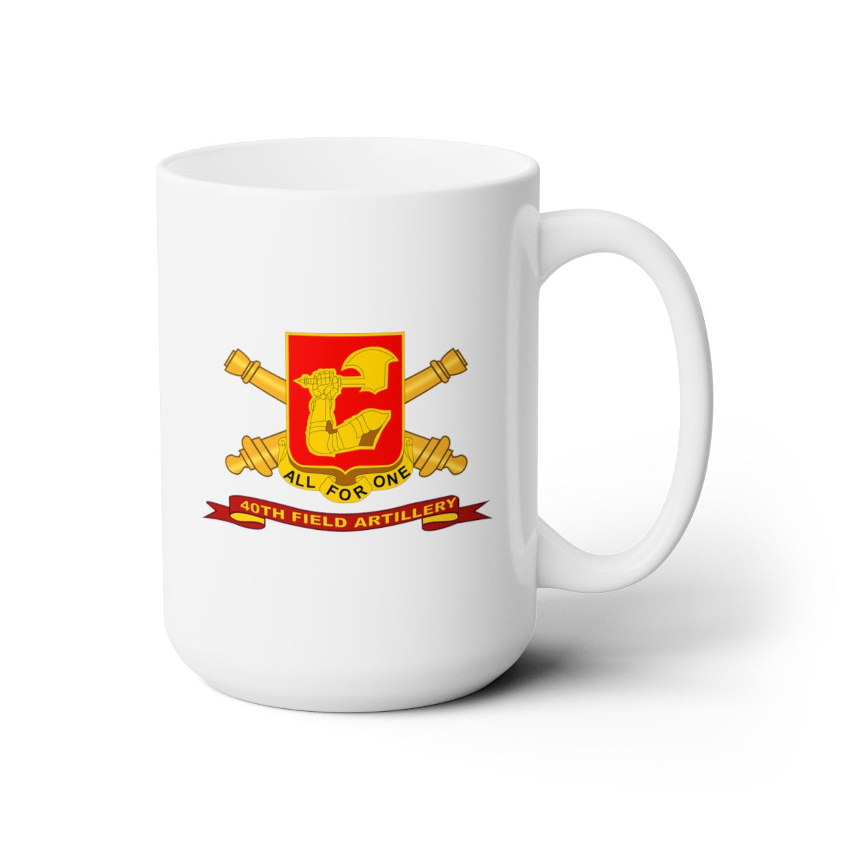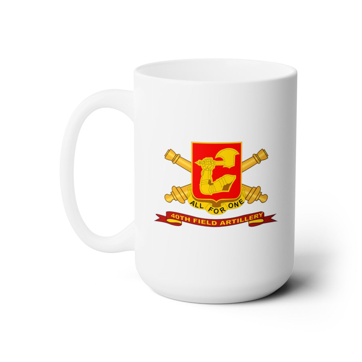 White Ceramic Mug 15oz - Army - 40th Field Artillery w Br - Ribbon