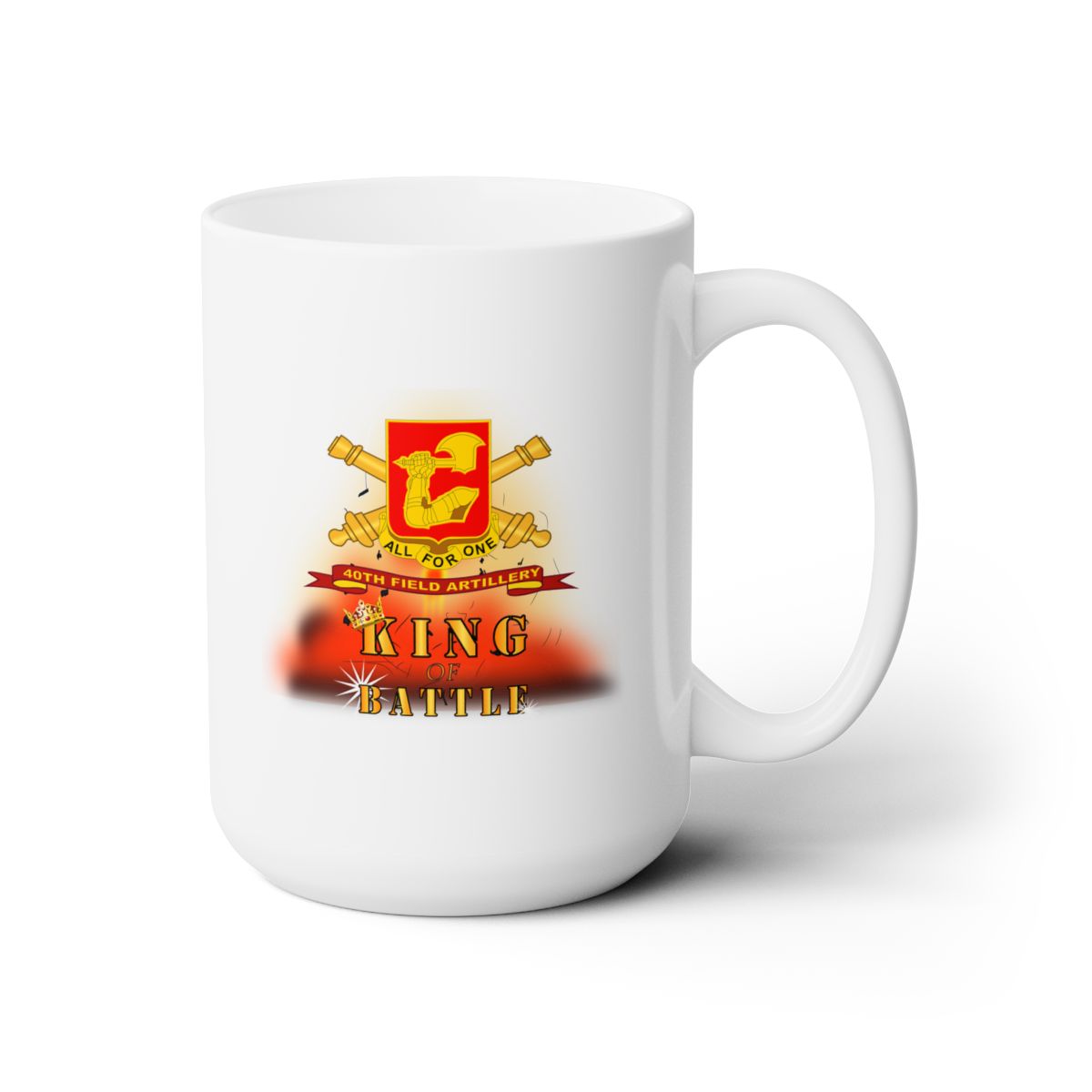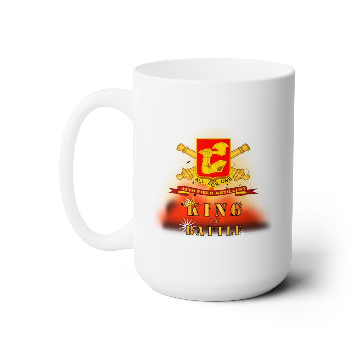 White Ceramic Mug 15oz - Army - 40th Field Artillery w Br - Ribbon - King of Batle w Expl - V1