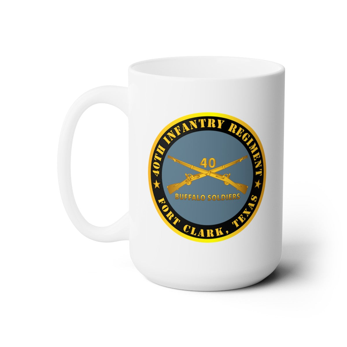White Ceramic Mug 15oz - Army - 40th Infantry Regiment - Buffalo Soldiers - Fort Clark, TX w Inf Branch