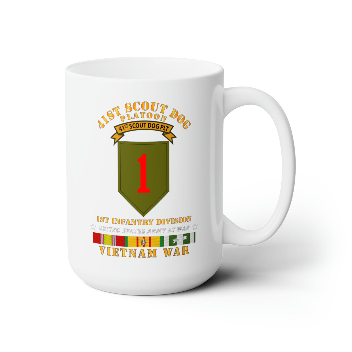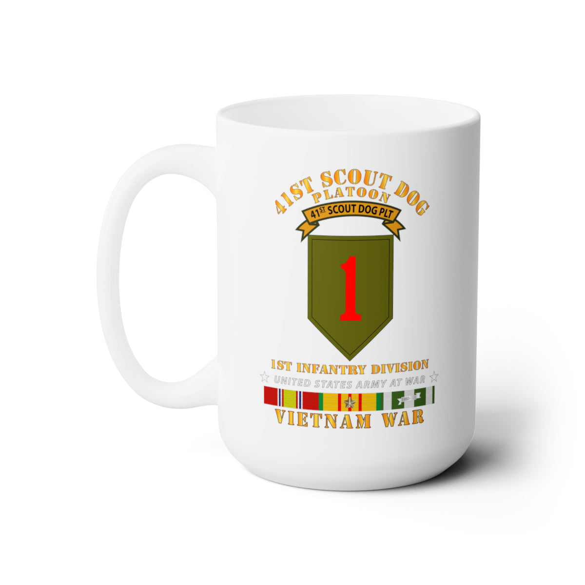 White Ceramic Mug 15oz - Army - 41st Scout Dog Platoon 1st Infantry Division w VN SVC