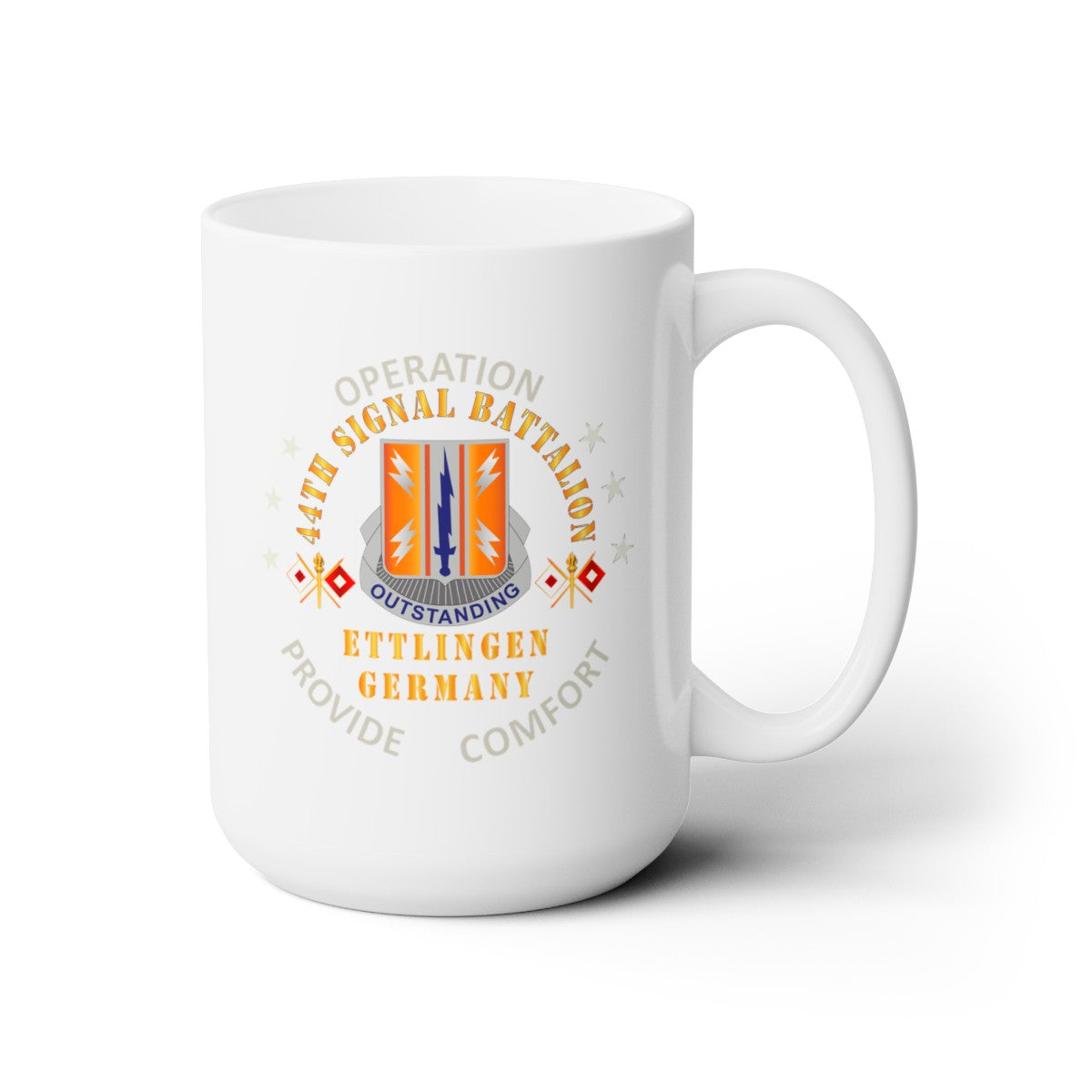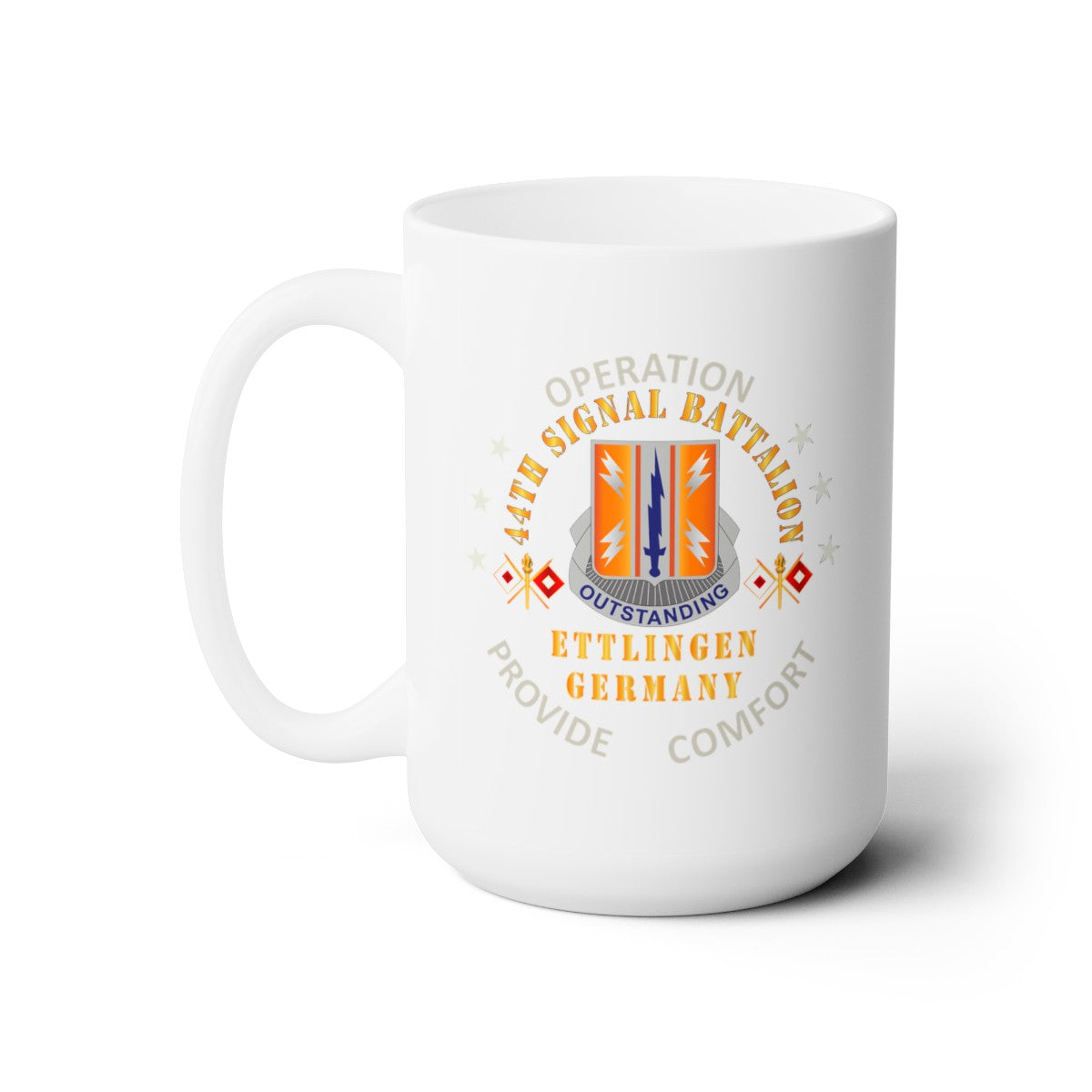 White Ceramic Mug 15oz - Army - 44th Signal Bn w Opn Provide Comfort - Ettlingen GE X 300DPI