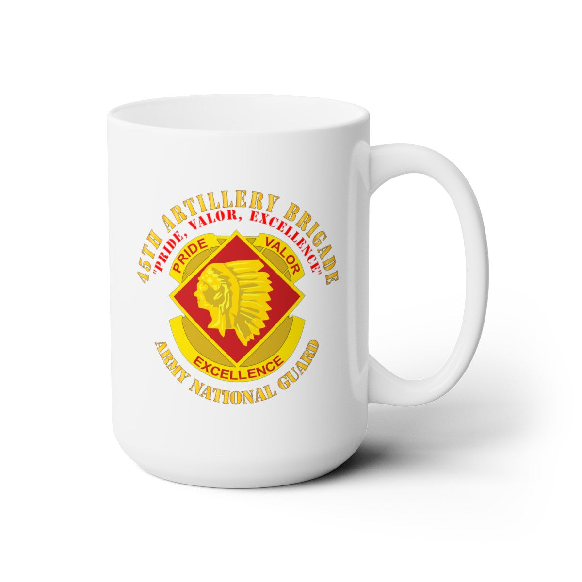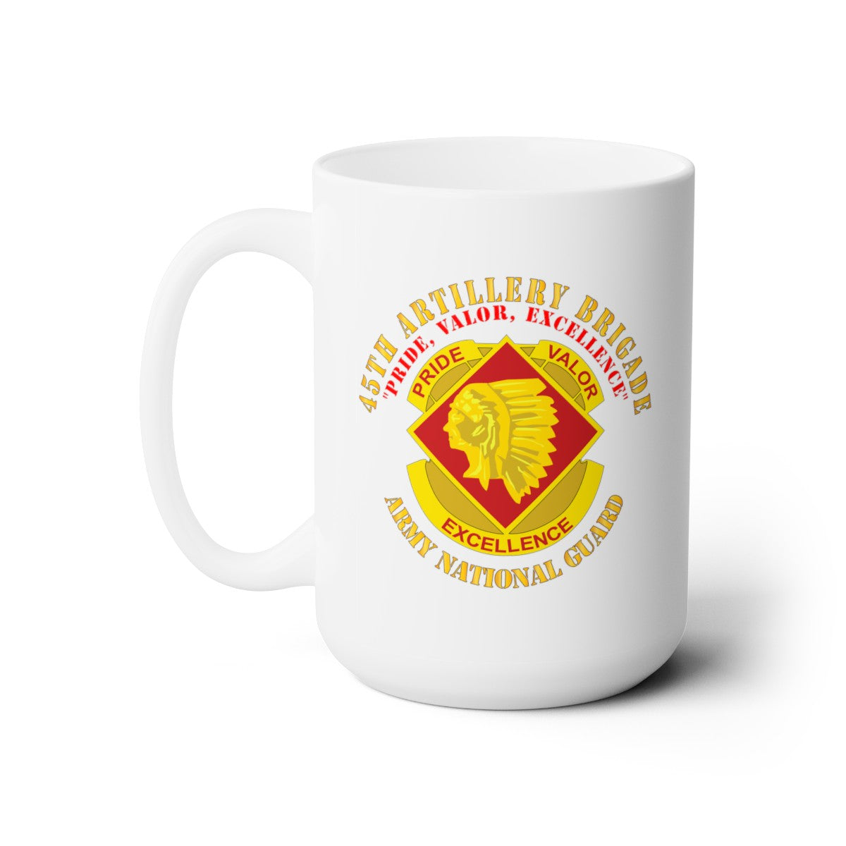 White Ceramic Mug 15oz - Army - 45th Artillery Brigade - Pride, Valor, Excellence - DUI - ARNG