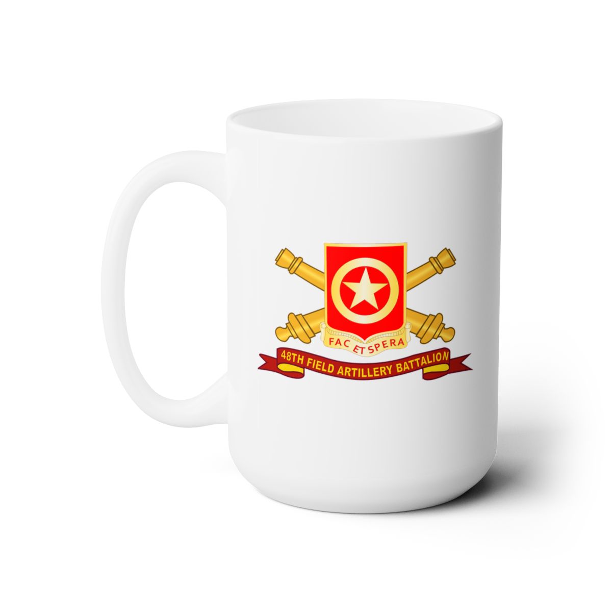 White Ceramic Mug 15oz - Army - 48th Field Artillery Battalion w Br - Ribbon