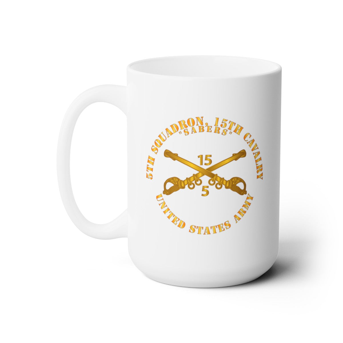 White Ceramic Mug 15oz - Army - 5th Squadron, 15th Cavalry - Sabers w Br