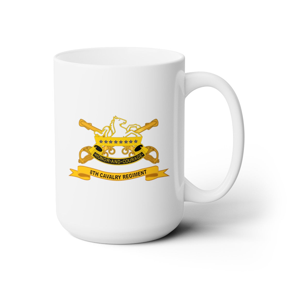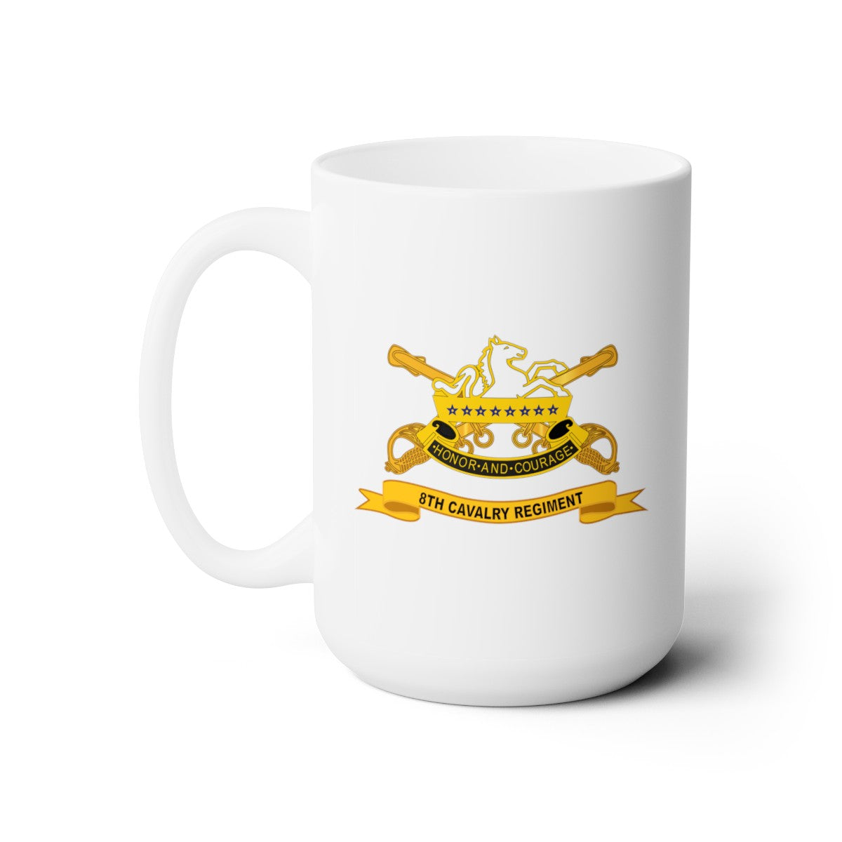 White Ceramic Mug 15oz - Army - 8th Cavalry Regiment w Br - Ribbon